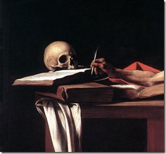 Detalhe de São Jerónimo da autoria de Caravaggio, c. 1605-1606